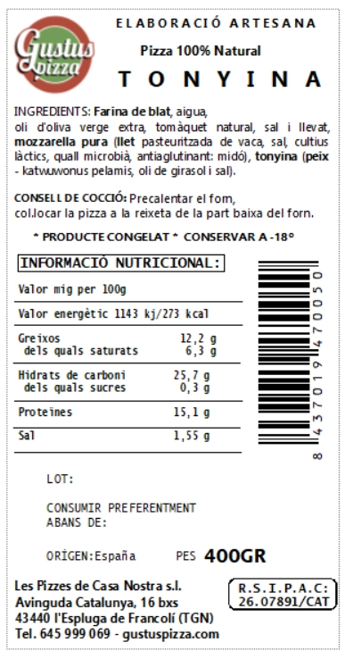 - Tipus: pizza congelada artesana